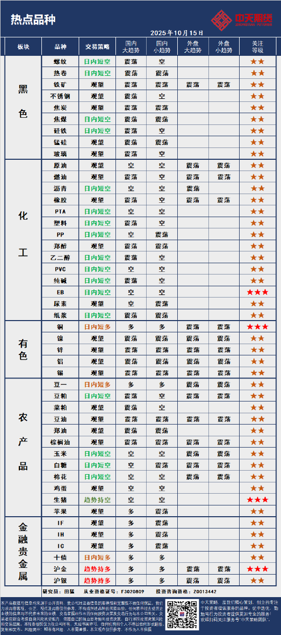 正文 中天策略:10月15日市场分析 亿通速配 V管理员 /2025-10-15 20:50:03/2阅读/0评论 1015 文章最后更新时间2025年10月15日,若文章内容或图片失效,请留言反馈! 新浪合作大平台期货开户 安全快捷有保障