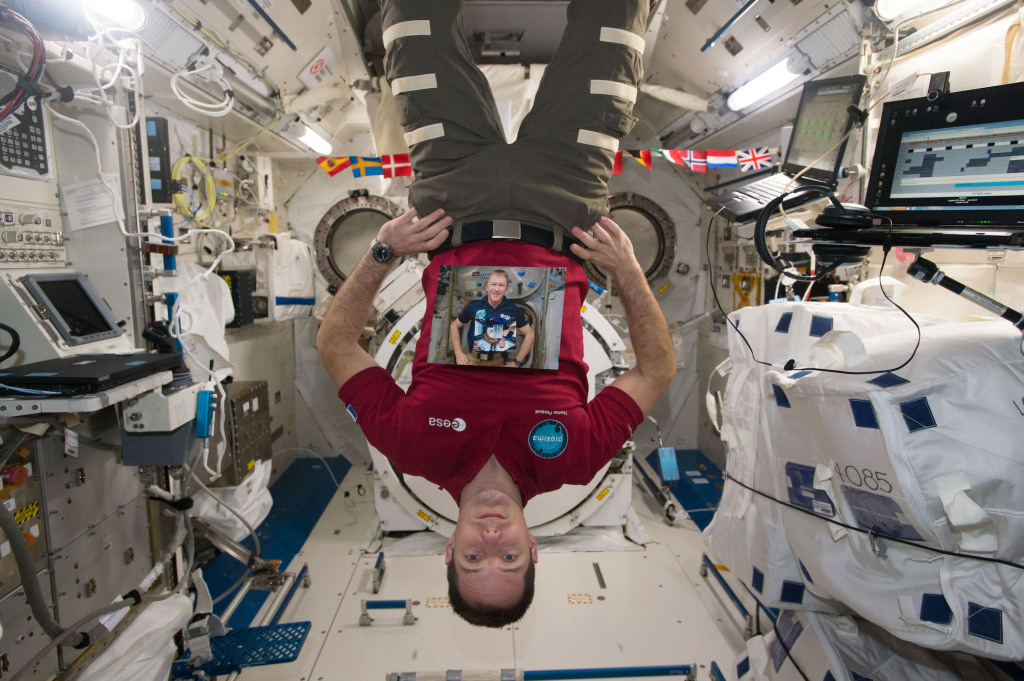 托马佩斯凯手持欧洲航天局同事照片的合影