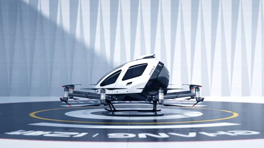 EH216-S 无人驾驶载人航空器是亿航的明星产品,目前已经拿下中国民航局颁发的全球首张无人驾驶载人电动垂直起降航空器型号合格证、生产许可证和标准适航证,成为了全球首个获得适航"三大通行证"的载人无人驾驶eVTOL机型。