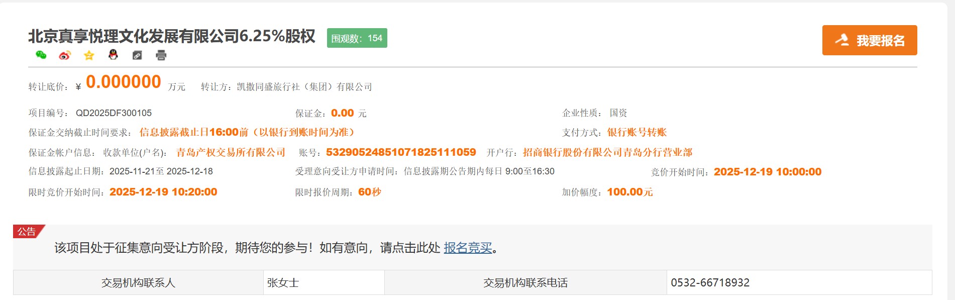 6000万打水漂?凯撒旅业0元甩卖真享悦理背后:破产重整的关键一环