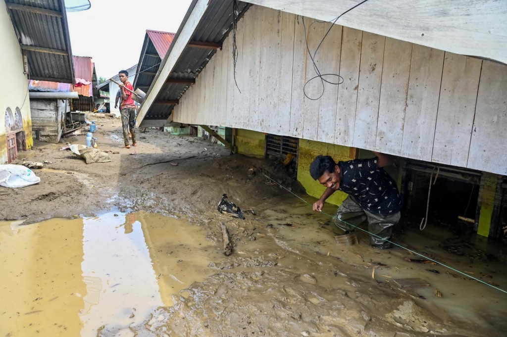 12月1日,印度尼西亚北苏门答腊省巴塘托鲁,一处村庄受到山洪影响。