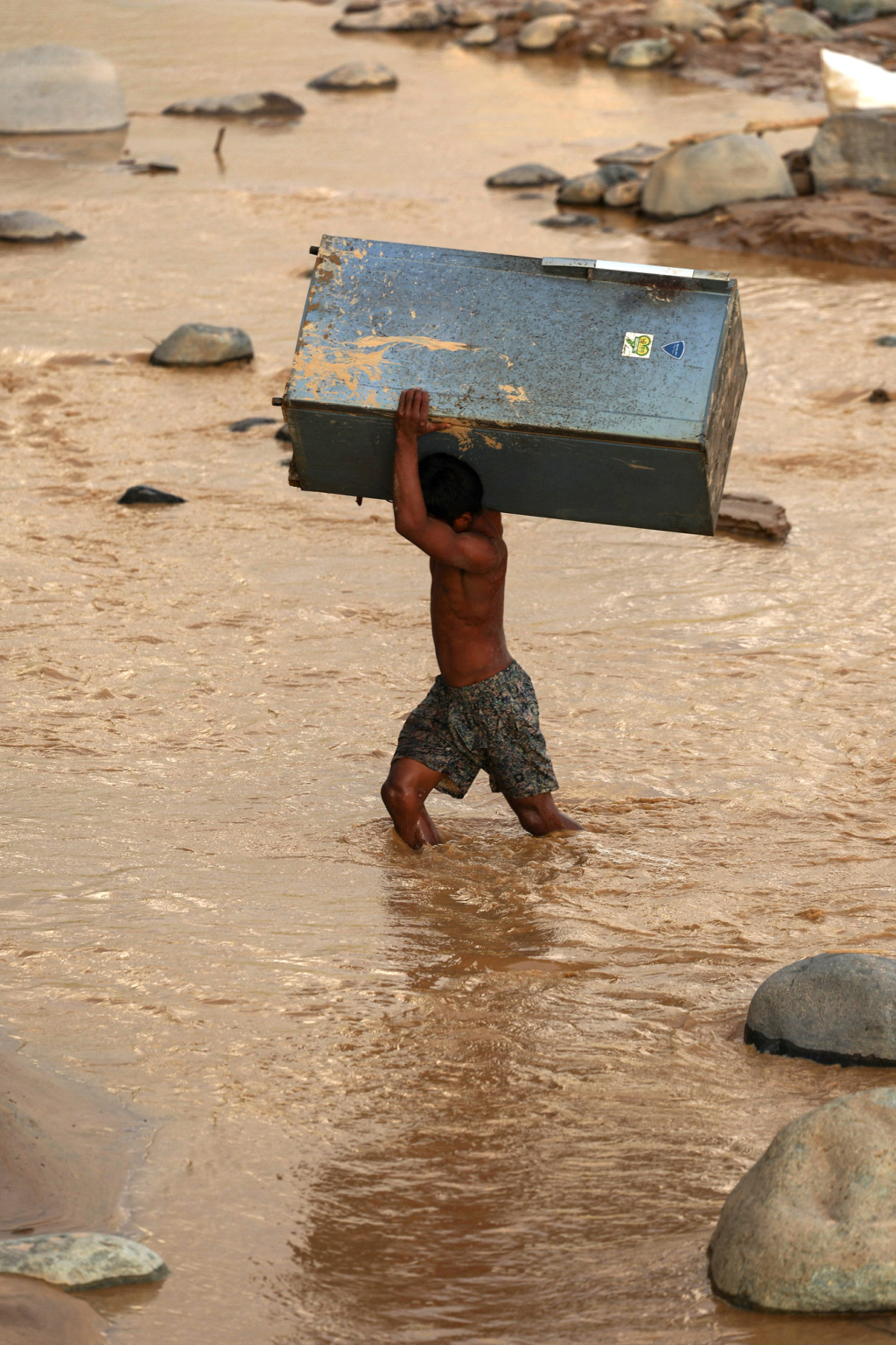 11月30日,在印度尼西亚西苏门答腊省,一名男子搬运一台冰箱。