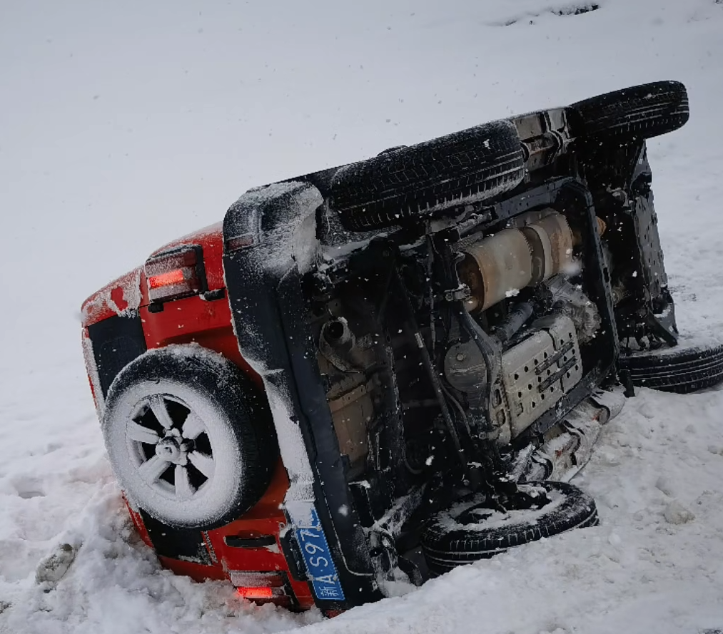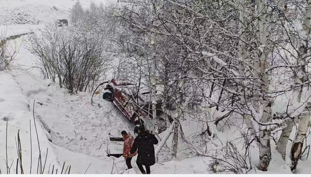 澎湃新闻从现场旅客处获悉,当天14时许,他们一行从禾木赶往阿勒泰时,沿途碰到多辆车侧滑致路基下方被困。